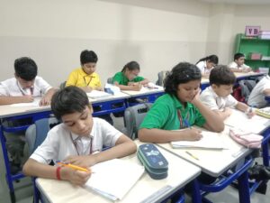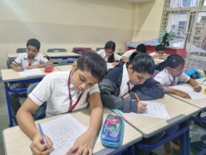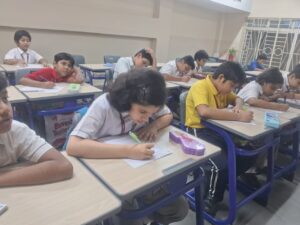 The Inter-House Fest for Junior School on 12th July saw Grades 3-5 all participating in English Creative Writing in the morning while Grade 5 made their PowerPoint presentations later in the day. On 15th July, Grades 3 and 4 participated in Dance while the finals of the Inter-House Spell Bee happened. The participants of the Robotics event from Grade 5 created their online programme later in the day. Some glimpses