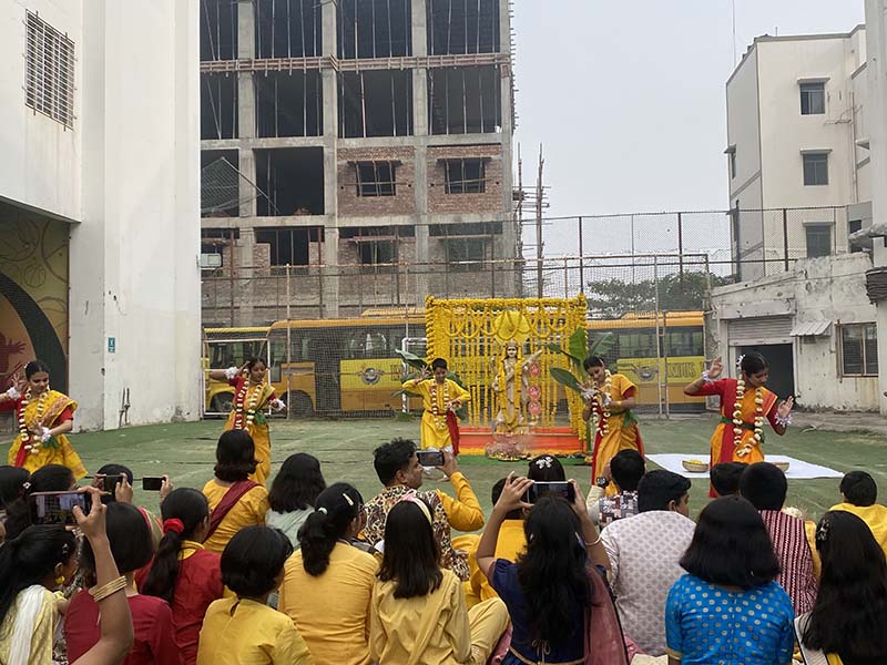 On 14th February, Saraswati Puja was celebrated with music and dance by the students, teachers, parents, and staff on the school grounds. The entire puja was conducted by the school choir as they sang all the stotras, and led everyone present in prayer. The performance by the students was followed by the arati and pushpanjali where everyone present participated.