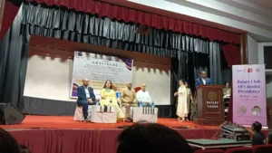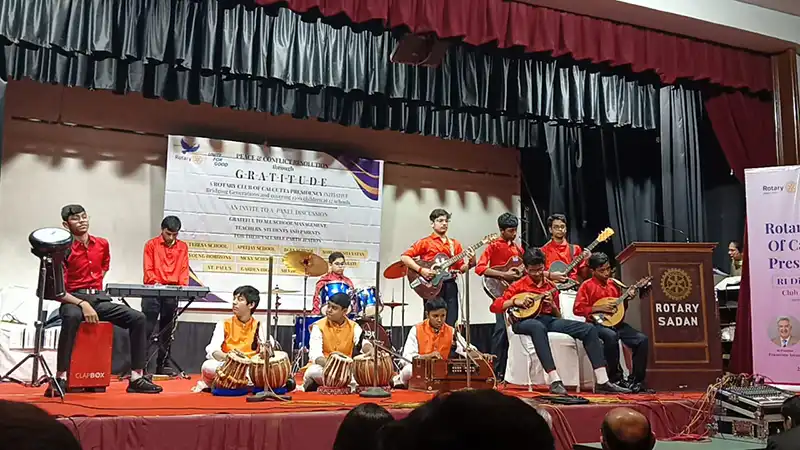 The programme began with a soulful opening song, followed by an energetic band performance and a short, engaging skit. The highlight of the event was the panel discussion featuring eminent speakers—Dr. Jai Ranjan Ram (Child Psychiatrist, Apollo), Prof. (Dr.) Deepali Singhee (Principal, ILEADs Institute), and Ms. Jessica Gomes Surana (Principal, Birla High School, Mukundapur), moderated by PDG Ravi Sehgal. Their insights helped students understand the power of gratitude in building harmony and resolving conflicts.